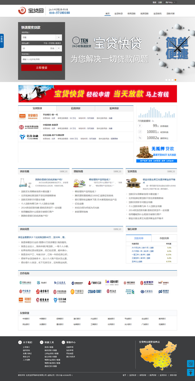 寶貸網(wǎng)的合作方均為國家指定的貸款機(jī)構(gòu),包括銀行、小貸公司、擔(dān)保公司、典當(dāng)行等等。廣大用戶可以通過寶貸網(wǎng)智能搜索平臺(tái)直接申請(qǐng)到正規(guī)可靠的貸款(省時(shí),低息,高效)。