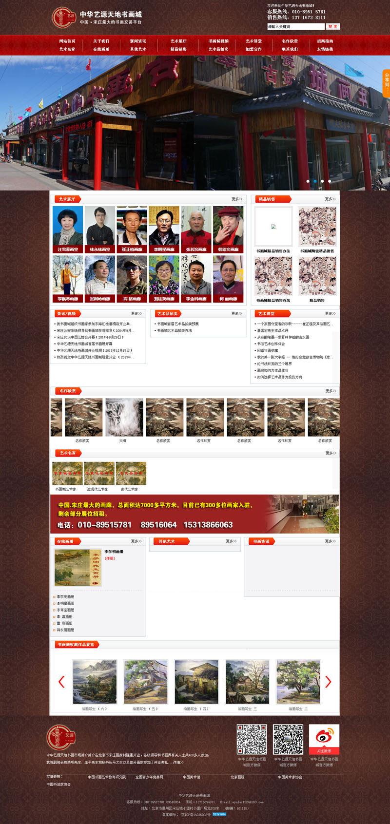為了給藝術(shù)家們營造更好的藝術(shù)氛圍、創(chuàng)作空間,擴(kuò)大對外交流途徑,將文化藝術(shù)資源與市場連接、社會化運作平臺很好的結(jié)合在一起,“中華藝源天地書畫城”組織文化藝術(shù)產(chǎn)業(yè)投資推廣中心、畫廊畫庫、文化藝術(shù)交流中心、網(wǎng)站推廣活動。努力把“中華藝源天地”建設(shè)成為全國性的藝術(shù)創(chuàng)作基地、藝術(shù)品交易基地及宋莊文化創(chuàng)意產(chǎn)業(yè)示范基地。“中華藝源天地書畫城”正以鮮明的藝術(shù)特色向世人展示著獨特的魅力和風(fēng)采!