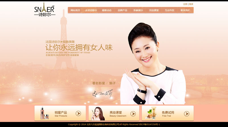 法國詩妳爾•細胞美雕是北京八方銘潤國際生物科技有限公司旗下一個法國核心品牌。她致力于研究東方女性肌膚問題,她的每一件產(chǎn)品的護膚體驗細膩美妙,高端華麗,科學性地讓每一位女性的肌膚年輕如故,永葆青春。