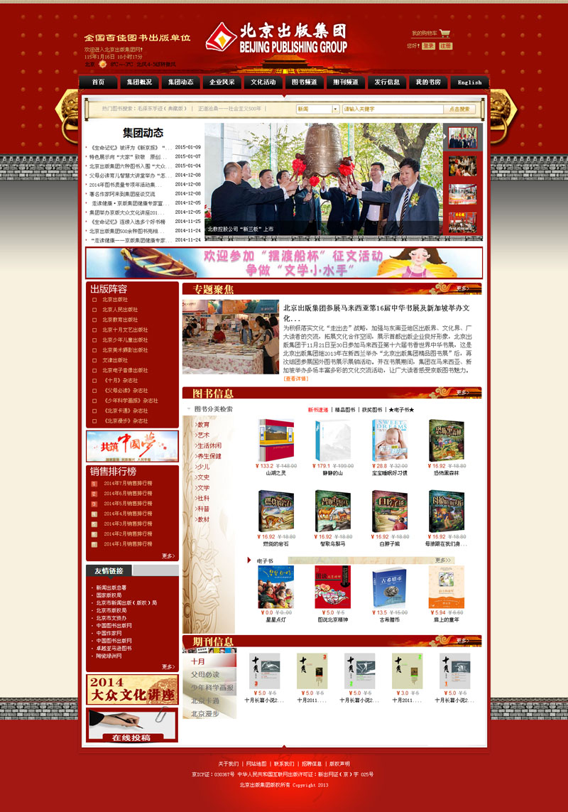 北京出版集團(tuán)一直非常重視版權(quán)交流和合作,始終堅(jiān)持國內(nèi)國際兩個(gè)市場(chǎng)并重、兩種資源并用,堅(jiān)持“走出去”“引進(jìn)來”兩種戰(zhàn)略并舉,積極拓展海外市場(chǎng),對(duì)外合作取得豐碩成果,國際影響力日益增強(qiáng)。近年來,集團(tuán)大力拓展品牌國際影響力和市場(chǎng)輻射力,積極嘗試從圖書“走出去”到企業(yè)“走出去”的戰(zhàn)略轉(zhuǎn)型。集團(tuán)成功舉辦了“北京香港出版交流活動(dòng)暨北京出版集團(tuán)精品書展”、“北京出版集團(tuán)2013年新西蘭圖書文化展”、“北京出版集團(tuán)參展馬來西亞第16屆中華書展及新加坡舉辦文化交流活動(dòng)”,開創(chuàng)了中國出版集團(tuán)獨(dú)家在香港、新西蘭、馬來西亞、新加坡舉辦大型文化活動(dòng)和精品書展的先河,充分展示了北京出版集團(tuán)的出版實(shí)力和整體形象。