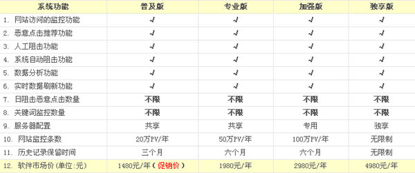 是國(guó)內(nèi)最早進(jìn)入防惡意點(diǎn)擊行業(yè)的領(lǐng)跑者,2004年開(kāi)始研發(fā),2007年正式商用。核心研發(fā)團(tuán)隊(duì)成員均為清華大學(xué)碩士。隨著不斷的升級(jí)完善,能夠應(yīng)付阻擊各種專業(yè)的惡意點(diǎn)擊,從而最大限度為客戶節(jié)省廣告費(fèi)用,提升網(wǎng)絡(luò)營(yíng)銷的效果!目前我們代理商遍布全國(guó),歡迎各地有實(shí)力公司與我們洽談合作。