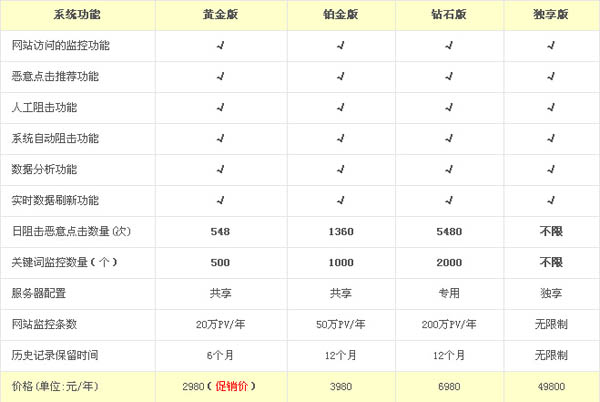 防惡意點(diǎn)擊效果好 處理效率高:強(qiáng)硬的技術(shù)保障,防惡意點(diǎn)擊系統(tǒng)每秒可以完成數(shù)千次的分析處理,可以阻擊代理Ip惡意點(diǎn)擊、地址欄惡意點(diǎn)擊、外站惡意點(diǎn)擊、惡意點(diǎn)擊軟件等多種惡意點(diǎn)擊行為。用戶每年可以節(jié)省50%左右的廣告費(fèi)。數(shù)據(jù)展示直觀 用戶操作簡(jiǎn)單:通過(guò)高效的采集網(wǎng)站訪客的點(diǎn)擊數(shù)據(jù),進(jìn)行專業(yè)、高效、智能化的算法分析,用戶可以在后臺(tái)管理系統(tǒng)里直觀的察看阻擊效果,幫助用戶分析網(wǎng)站訪客情況和推廣效果。強(qiáng)力阻擊 處罰惡意點(diǎn)擊用戶:通過(guò)簡(jiǎn)易的設(shè)置,用戶可以精確的阻擊惡意點(diǎn)擊者,本系統(tǒng)可以對(duì)阻擊惡意點(diǎn)擊者采取警告、限制訪問(wèn)、攻擊等反惡意點(diǎn)擊行為。滿意的售后服務(wù) 提供全天服務(wù):購(gòu)買任一款“金盾防惡意點(diǎn)擊系統(tǒng)”的用戶在服務(wù)期內(nèi)可以享受免費(fèi)安裝服務(wù),24小時(shí)全天電話咨詢服務(wù),網(wǎng)絡(luò)技術(shù)支持服務(wù)。