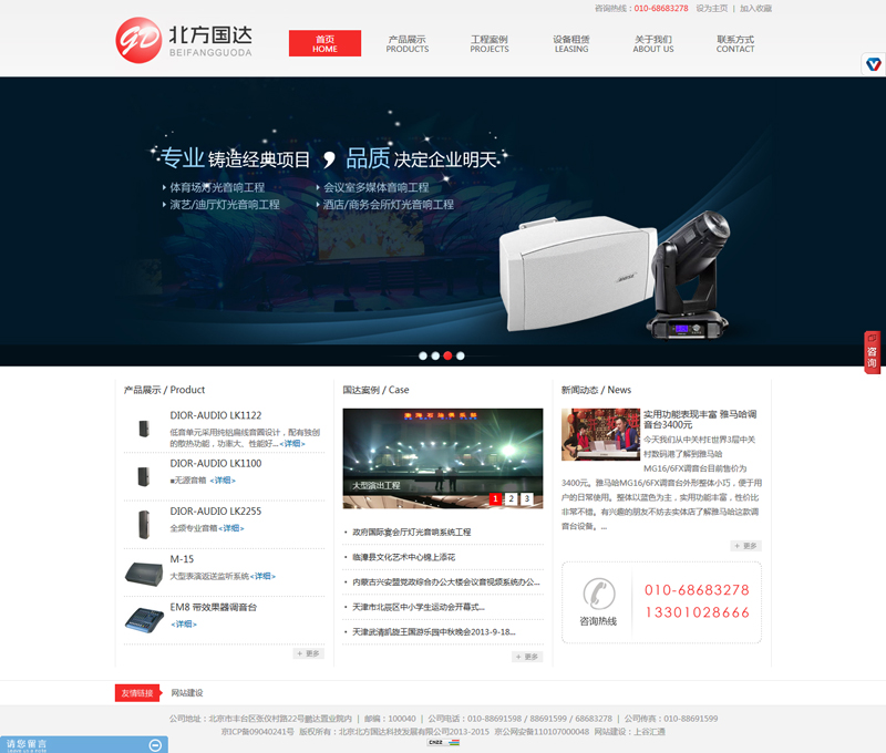 北京北方國達科技發(fā)展有限公司,成立于 90 年代初,是一家集燈光音響代理銷售、安裝、調(diào)試、設(shè)計、大型演出設(shè)備租賃及相關(guān)技術(shù)咨詢服務(wù)于一體的專業(yè)燈光音響技術(shù)工程公司。