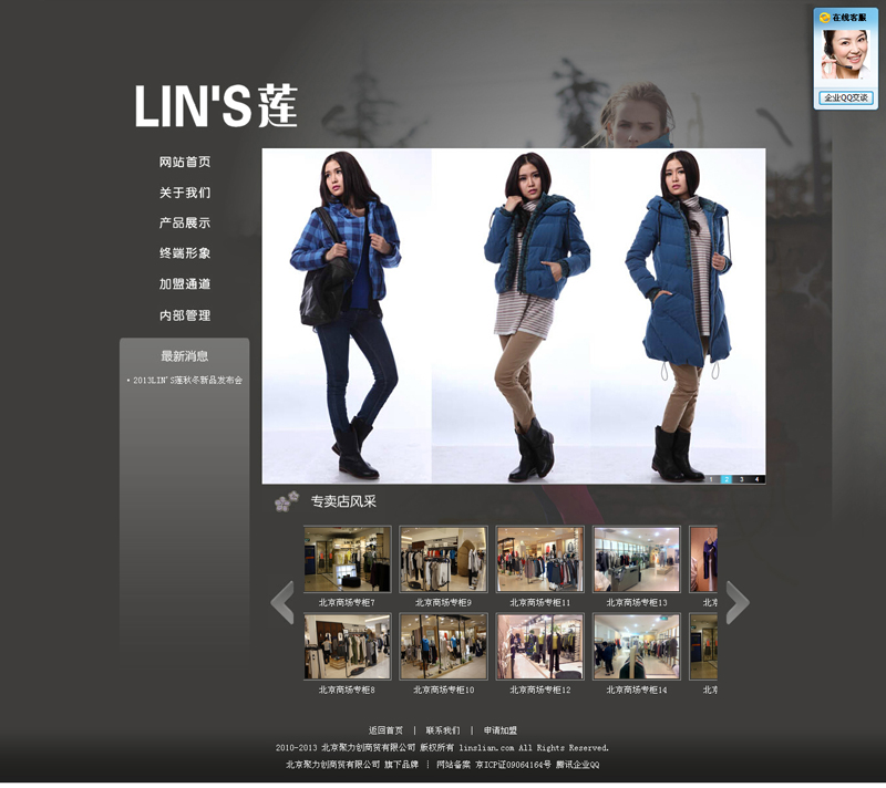 公司旗下的品牌LIN'S“蓮”,主要面向25-45歲的都市女性,在秉承了傳統(tǒng)東方文化的同時(shí),又融入了歐洲的時(shí)尚與潮流;她非常注重產(chǎn)品的外形結(jié)構(gòu)、新層疊主義搭配和每個(gè)細(xì)微環(huán)節(jié)的變化,表現(xiàn)出風(fēng)格獨(dú)特、搭配前衛(wèi)但不張揚(yáng),她是個(gè)性、寬松的穿著理念、追求時(shí)尚休閑與功能的完美結(jié)合。讓廣大的女性朋友充分展現(xiàn)自己百變靚麗的風(fēng)格,適合現(xiàn)代女性多元化的審美觀和價(jià)值觀。