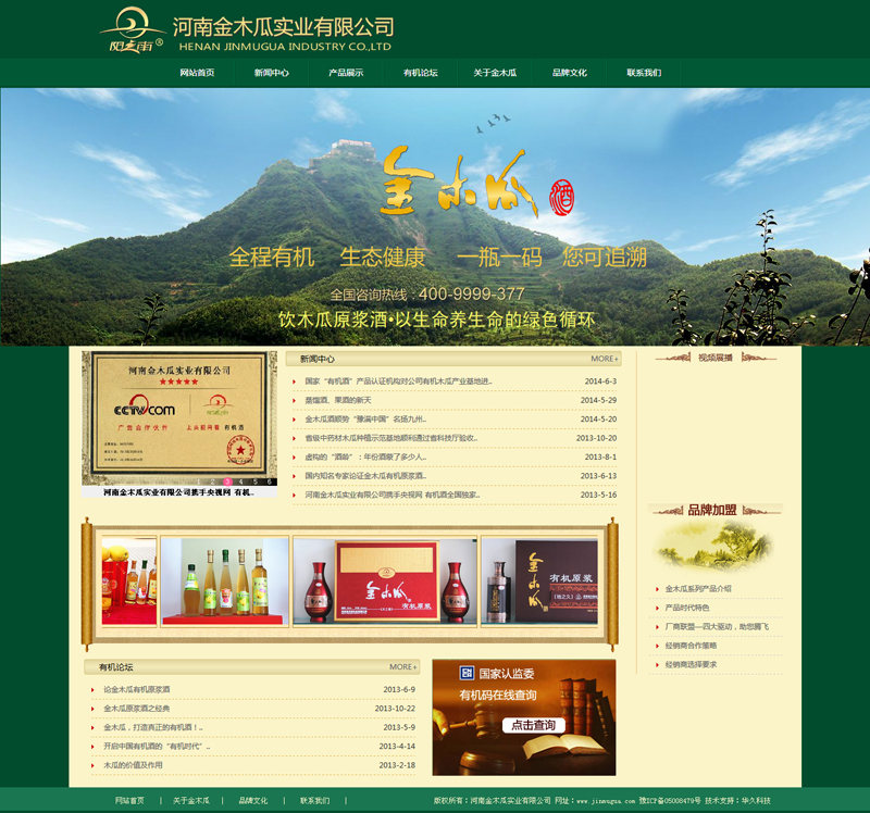 金木瓜精深加工項(xiàng)目設(shè)計(jì)年達(dá)產(chǎn)木瓜有機(jī)原漿酒3000噸、有機(jī)木瓜飲料5000噸、有機(jī)干紅3000噸、木瓜香精油100噸產(chǎn)業(yè)項(xiàng)目現(xiàn)正在建設(shè)。目前公司主打產(chǎn)品高端“陽(yáng)之南”牌金木瓜原漿酒,該產(chǎn)品已分別獲得了繼茅臺(tái)、五糧液之后中國(guó)第三個(gè)國(guó)家“有機(jī)酒”品牌認(rèn)證,河南省唯一認(rèn)證;“中國(guó)著名品牌”認(rèn)證;“ISO9001質(zhì)量管理體系”認(rèn)證。金木瓜原漿酒釀制工藝技術(shù)已分別榮獲中國(guó)農(nóng)業(yè)高新科技成果最高獎(jiǎng)項(xiàng)“后稷特別獎(jiǎng)”及政府“科學(xué)技術(shù)進(jìn)步獎(jiǎng)”;獨(dú)特的生產(chǎn)技術(shù)已申請(qǐng)國(guó)家專利保護(hù)。產(chǎn)品已成功進(jìn)入國(guó)內(nèi)高端市場(chǎng),公司現(xiàn)分別在北京、上海、廣東設(shè)立了辦事處。