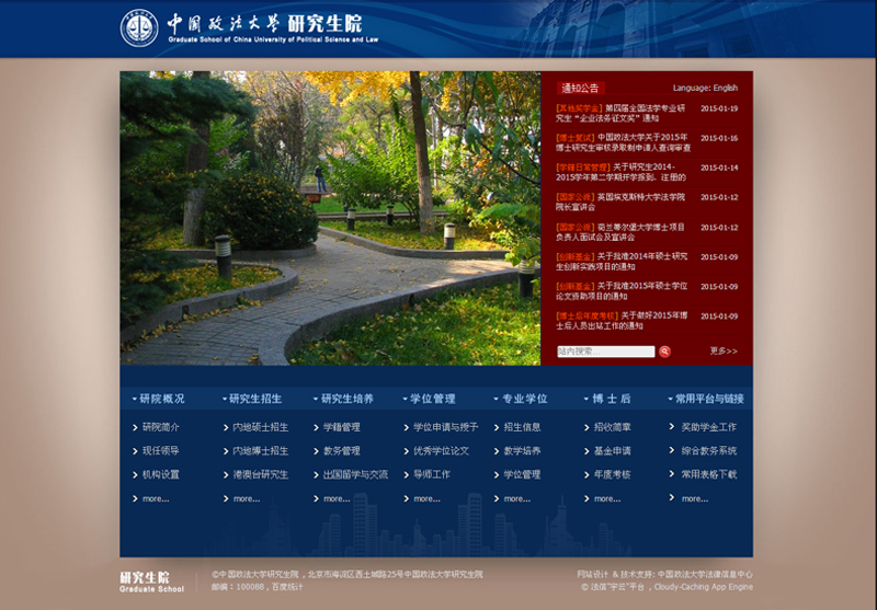 中國(guó)政法大學(xué)研究生院是一所以法學(xué)為特色和優(yōu)勢(shì)、兼有文學(xué)、史學(xué)、哲學(xué)、經(jīng)濟(jì)學(xué)、管理學(xué)等多學(xué)科門(mén)類的研究生院,地處北京市海淀區(qū)中關(guān)村高等學(xué)校和科研機(jī)構(gòu)中心區(qū),北臨久負(fù)盛名的“燕京八大景”之一——“薊門(mén)煙樹(shù)”,東沿元大都土城遺址公園小月河、野松林。水波蕩漾,松濤起伏,底蘊(yùn)深厚,人文薈萃。