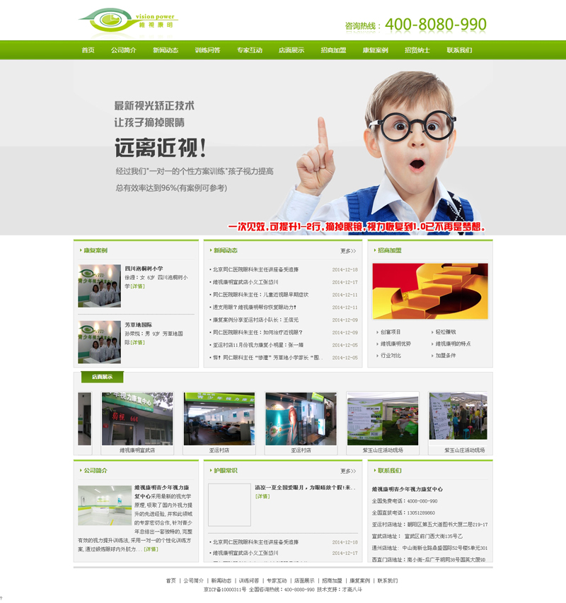 北京維視康明青少年視力康復(fù)中心是維視康明(北京)科技有限公司旗下的視訓(xùn)連鎖機(jī)構(gòu),專業(yè)從事“近視、弱視、散光、遠(yuǎn)視”矯治的綜合性視力康復(fù)機(jī)構(gòu)。總部位于北京朝陽(yáng)區(qū)SOHO現(xiàn)代城B座1802室。公司自成立以來(lái)開設(shè)直營(yíng)店自主經(jīng)營(yíng),為廣大青少年患者解決視力問(wèn)題,并積累了豐富的開店經(jīng)驗(yàn)和獨(dú)特的治療技術(shù)。其療效得到了廣泛地認(rèn)可和家長(zhǎng)的傳播。中心采用最新的視光學(xué)原理,吸取了國(guó)內(nèi)外視力提升的先進(jìn)經(jīng)驗(yàn),并和此領(lǐng)域的專家密切合作,針對(duì)青少年總結(jié)出一套獨(dú)特的、完整有效的視力提升訓(xùn)練法,采用一對(duì)一的個(gè)性化訓(xùn)練方案,通過(guò)鍛煉眼球內(nèi)外肌力,增強(qiáng)視細(xì)胞的敏銳度,改善人眼的調(diào)節(jié)能力,從而達(dá)到提高裸眼視力的目的,對(duì)18歲以下青少年的近視、弱視、散光、斜視、遠(yuǎn)視有著相當(dāng)顯著的效果。此辦法完全顛覆了近弱視的傳統(tǒng)觀念,采用非手術(shù)、非植入、不打針、不吃藥、不接觸眼球、純物理的多維視功能優(yōu)化訓(xùn)練體系,是迄今為止最科學(xué)、最全面、最安全、最快速、效果最穩(wěn)定的非手術(shù)視力康復(fù)技術(shù)。