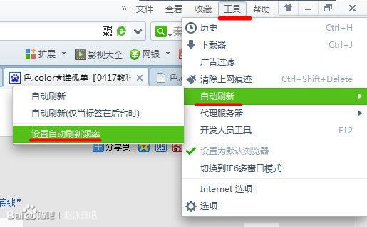 1、【360瀏覽器】可以點(diǎn)“工具”那里,下面有個(gè)“自動(dòng)刷新”,設(shè)置為每隔n秒刷新一次。設(shè)置后要注意把“自動(dòng)刷新”那里勾選上,瀏覽器就可以自己刷了